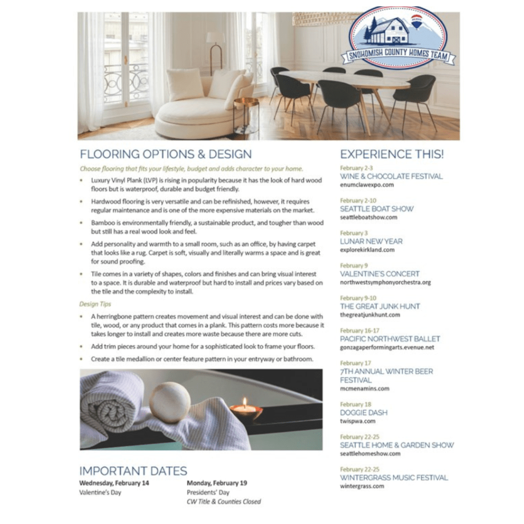 Hey there, lovely Washingtonians! 🌲❄️ As Cupid sprinkles love, let’s talk real estate magic in February! 🏡💖 The market is as enchanting as ever, with cozy homes waiting to embrace you. 🏠✨ Pro-tip: In this chilly weather, warm up your home’s curb appeal with seasonal touches! 🚗❤️ Exciting local events are blooming like spring flowers – stay tuned for sweet surprises! 🌷💝🌟 Let’s make your home dreams a reality! 🏠✨