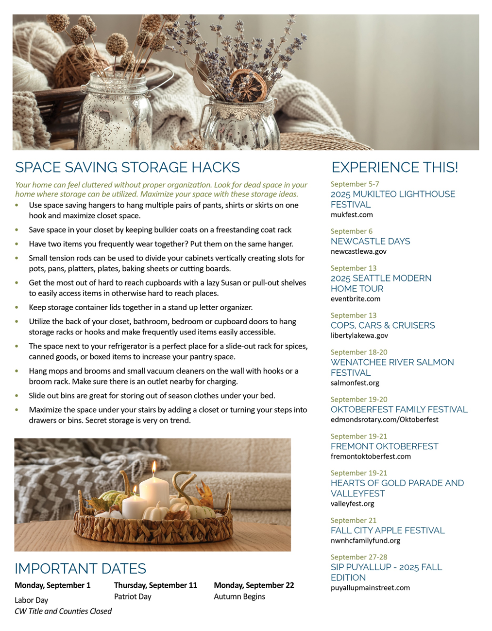 Happy September, friends! 🍂 This month’s newsletter is packed with: 📊 A fresh Eye on the Market 🏡 Fall home décor ideas to cozy up your space 📦 Clever space-saving tips 🎶 Can’t-miss local events around the Sound Grab your coffee ☕ and take a few minutes to check it out—you’ll love what’s inside! 💌
