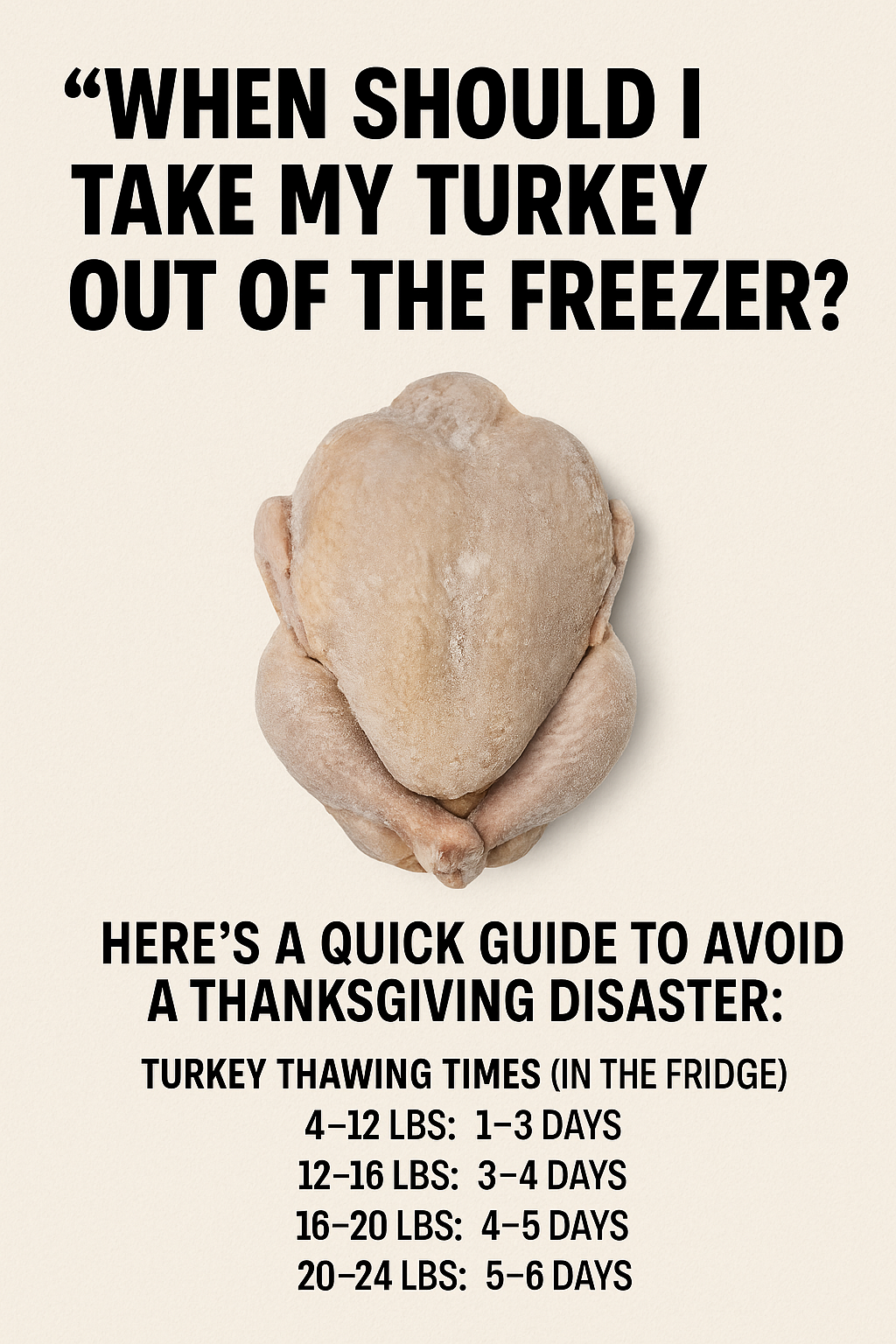 It’s the time of year when millions of people are asking the same big question: “When should I take my turkey out of the freezer?”